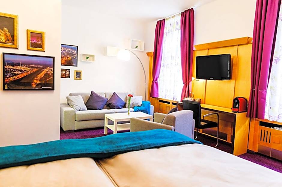 This spacious room features a seating area as well as a tea and coffee maker (capsule machine).Most of these rooms face the quiet inner courtyard. This room also comes with snacks, fruit and a jukebox. Rooms with a small balcony or with a bathtub are available on request. This room includes Air conditioning